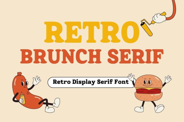 Retro Brunch Serif Font, the ultimate retro display font that brings a healthy dose of vintage charm. This font effortlessly captures the essence of the past, making it ideal for retro-inspired projects, posters, and brands. With its timeless serifs and bold, distinctive characters, Retro Brunch Serif adds a touch of classic sophistication to any design. Enhance your designs and take a trip down memory lane with the deliciously elegant RetroBrunch Serif font