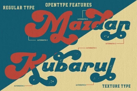 Retro Couture Typeface is a stylish script display font inspired by vintage poster design. This font is perfect for storybooks, illustrations, comic books, t-shirts, posters, greeting cards, logos, branding, stickers, or anything that needs a cool, retro accent. Retro Couture is PUA encoded which means you can access all the glyphs and ligatures with ease!