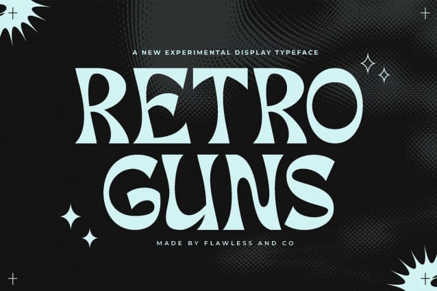 This font is made for personal use. Get the full version of the fonts if you want to use it for commercial purposes by purchasing the licenses here: https://creativemarket.com/Flawlessandco/91588227-Retro-Guns-Display-Font-Type?u=fontlot123