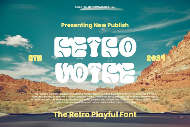 Retro Votre Font is a delicate, elegant and flowing handwritten font. It has beautiful and well as a unique blend of ligatures a letter, so that the authors compose it with a and little swirly embedding, so that a modern font is formed and ready to make a statement by adding elegant and unique flair to your next design project. Add it to your most creative ideas and notice how it makes them come alive!