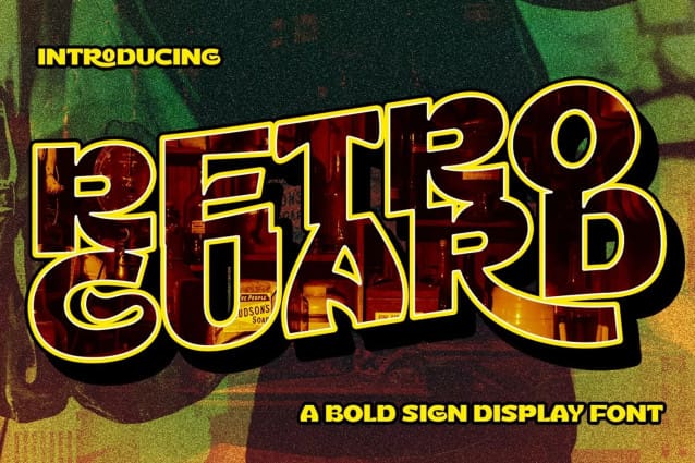 Retroguard Font, is a typeface that was inspired by classic movies and frequently makes people nostalgic for the height of cinema. This typeface is distinguished by its strong, dramatic letterforms, which frequently evoke the early 20th-century Art Deco and Art Nouveau movements. Images that enhance boldness and drama, including black-and-white photos, antique movie posters, or pictures of film reels, are frequently used in conjunction with this font.