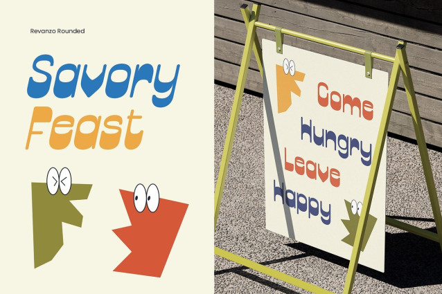 Perfect for Bold and Characterful Design From funky branding to standout packaging, posters, or lifestyle visuals, Revanzo Rounded brings bold personality to the forefront. It’s made for creatives who want to communicate fun, uniqueness, and memorability in their typography.