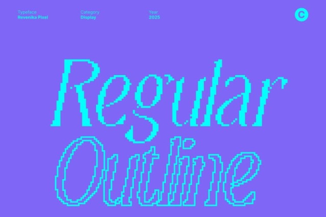Revenika Pixel Font This is an elegant serif display font that blends refined curves with a distinctive pixel-styled construction, creating a perfect balance between sophistication and digital charm. Designed for creators who want something luxurious yet modern, this font elevates any layout with its graceful, elongated details and stylish serif forms.