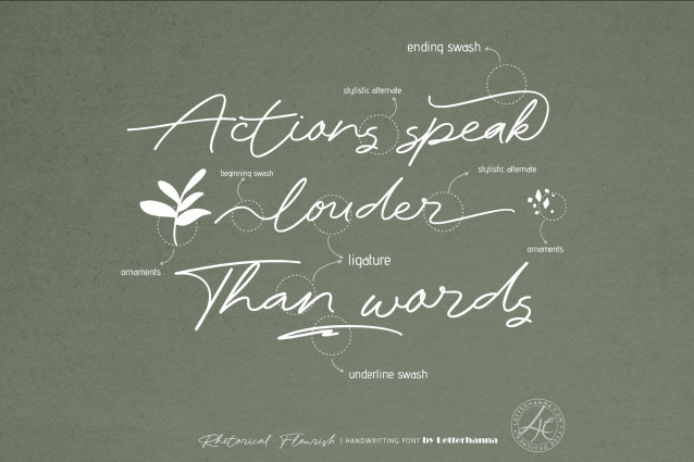 Rhetorical Flourish Handwriting Font Unleash the power of persuasion and captivate your audience with Rhetorical Flourish, our newest typeface designed to add drama and impact to your written word. Rhetorical Flourish isn’t just a font; it’s a statement. Each letter boasts graceful curves and elegant flourishes, drawing the eye in and demanding attention.