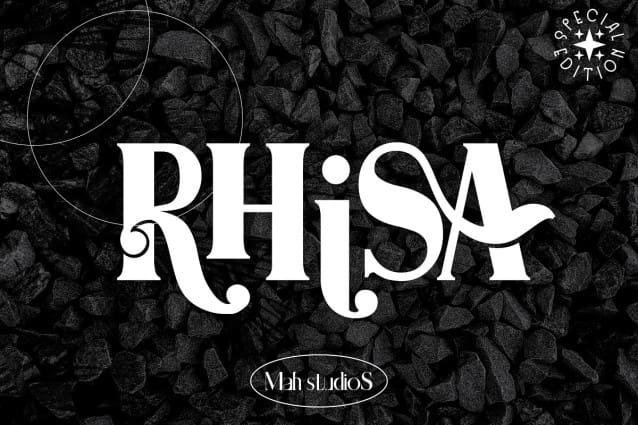 Rhisa Font – Serif style font, suitable for any projects such as: logos, branding projects, homeware designs, product packaging, mugs, quotes, posters, shopping bags, t-shirts, book covers, name card, invitation cards, greeting cards, label, photography, watermark, special events, and all your other luxury projects that need a premium signature taste.