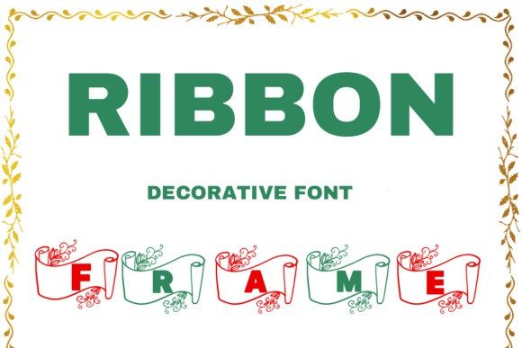 Ribbon Frame Font is a highly decorative display font designed to emulate the elegance and festivity of ribbon-wrapped lettering.Each Ribbon Frame decorative character is embedded within an illustrated ribbon banner, alternating between sweeping red and green curls with ornate detailing, making it ideal for holiday themes, especially Christmas and festive invitations.