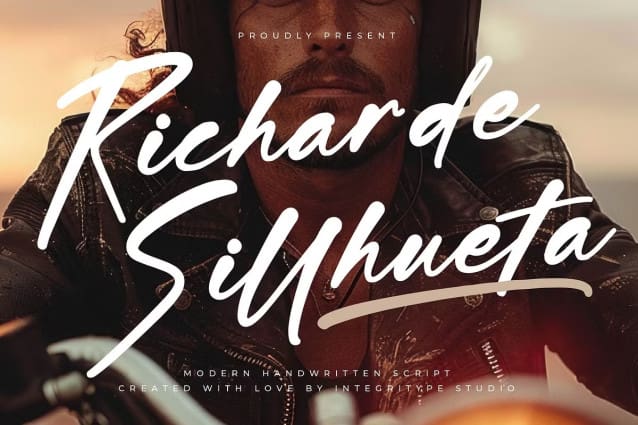 Richarde Sillhueta Font – Modern Handwritten Font, from Integritype Studio, perfect for any project like: logos, branding projects, homewares designs, product packaging, mugs, quotes, posters, shopping bags, t-shirts, covers books, business cards, invitation cards, greeting cards, labels, photography, watermarks, special events and all your other luxury projects that require a premium taste.