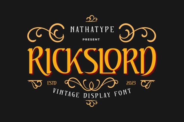 Rickslord Display Font is an uppercase display font that transports you back in the early 20th century. This font is a proof of the elegance of a bygone era. Besides that, Rickslord still manages to maintain a modern edge.