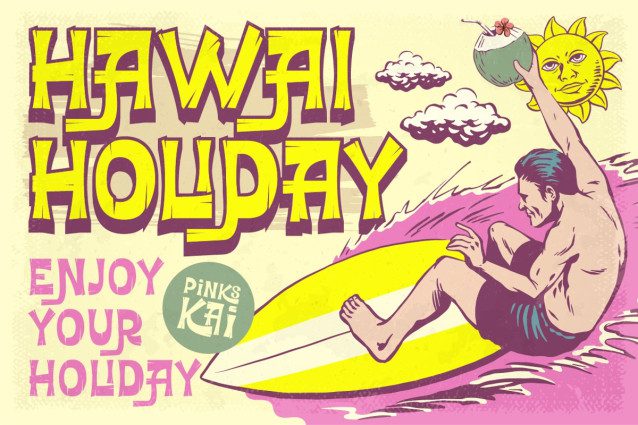 Ricopalm Font This playful Hawaiian-style display font brings a fresh tropical energy to your designs. Inspired by vintage beach posters and tropical vacations, Ricopalm is perfect for when you want your project to feel fun, relaxed, and full of life. With its bold shapes, funky curves, and bright personality, Ricopalm makes any word look like it just came off a surfboard in Waikiki. It comes with 3 styles (Regular, Outline, and 3D Extrude) plus lots of ligatures and alternates to keep your typography looking natural and cool. Whether you’re creating summer event posters, beach café menus, logo, or throwback Instagram graphics — Ricopalm is your perfect wave to ride.