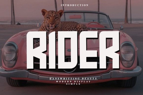 Rider Font is a bold and striking modern display font with sharp angles and strong geometric shapes. Designed for maximum impact, it’s perfect for sports posters, automotive branding, music covers, and headlines that demand attention. Rider’s confident and edgy style brings a sense of power and motion to any design.