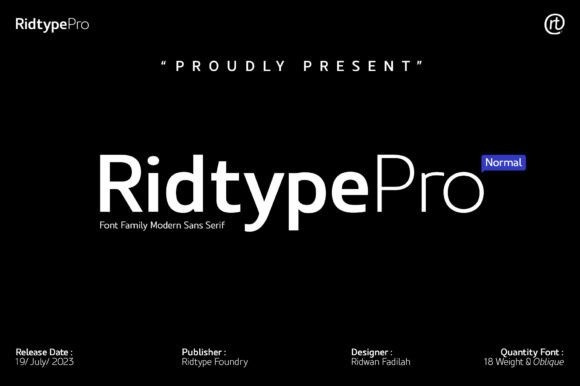 Ridtype Pro Font is a custom font for our brand, and later this font will work in all roles in the type of brand we use. both in units of typography, printing, and type texting. This font is equipped with a modern semi-classic category type, so this font can work in all lines of business, both for supporters of implementation in modern and classic business.