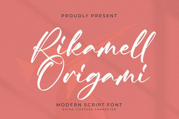 Rikamell Origami Font – Modern Script Font, from Integritype Studio, is a premium Modern Script Font, perfect for any project like: logos, branding projects, homewares designs, product packaging, mugs, quotes, posters, shopping bags, t-shirts, covers books, business cards, invitation cards, greeting cards, labels, photography, watermarks, special events and all your other luxury projects that require a premium taste.