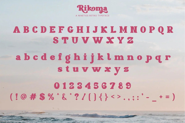 Rikoma Typeface – Retrov Font, our latest creation, modern serif with various alternates and ligatures, multilingual support, an updated blend of bohemian style, suitable for branding, business, logos, magazines, and others