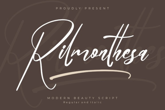 Rilmonthesa Script Font is a modern script font, perfect for a variety of projects such as logos, branding projects, homeware designs, product packaging, mugs, quotes, posters, shopping bags, t-shirts, book covers, name card, invitation cards, greeting cards, label, photography, watermark, special events, and all your other lovely projects that need a beautiful script taste.