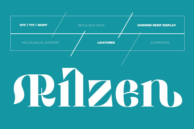Rilzen Font is a classy serif font that brings elegance to your text. With its sleek lines and sophisticated curves, it adds a touch of refinement to any project. Perfect for fashion magazines, stylish invitations, or upscale branding, it exudes confidence and sophistication. Whether you’re aiming for a timeless look or a modern edge, this font is sure to elevate your design with its understated elegance.