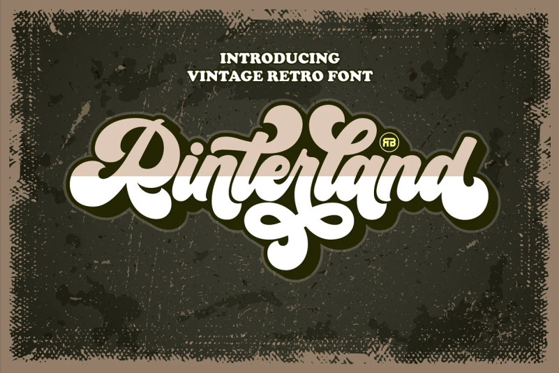 Rinterland Font is a Vintage retro font. Inspired from retro typography and lettering in the 70’s and 80’s combine with bold typography style. This font perfect for vintage and retro design, badge, logos,t-shirt, poster, branding, packaging, signage, book coverand so much more!