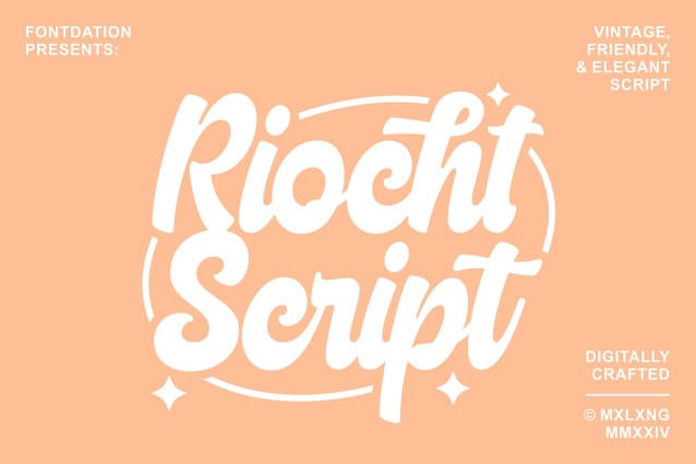 Riocht Script Font, our brand new playful yet vintage script font. Inspired by letters/signpaintings that are used in classic advertisement/product packaging, tweaked with high.attention to details to match todays designing standard. Available in tail-less version (alternate characters) too, so you can play more with the letter variations. Suits best for food/beverage packagings, logo/branding, quote/poster/apparel designs, headlines, social media contents, etc.
