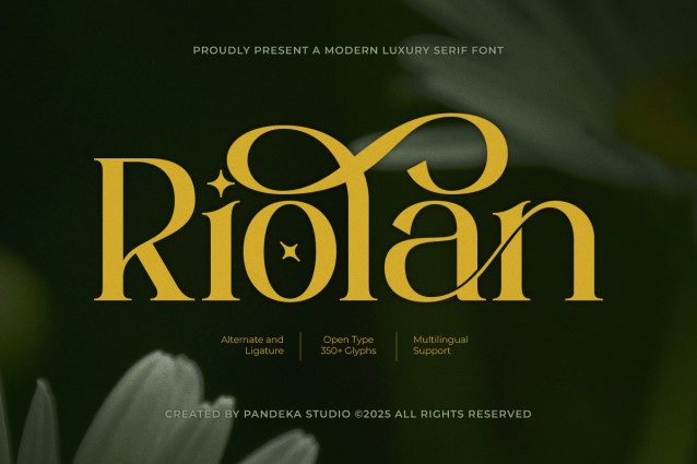 Riolan Font is a refined serif typeface that radiates sophistication and timeless beauty. Designed with graceful curves, high contrast, and elegant proportions, this font brings a sense of exclusivity to any visual identity. Perfect for luxury logos, fashion brands, editorials, packaging, and modern lifestyle projects, Riolan embodies the essence of classic elegance with a contemporary flair.
