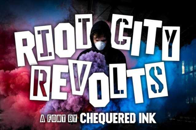 Riot City Revolts! Font, Suitable for any design needs : logo, branding, modern advertising design, logos, poster quote, book / cover Title, editorial design, website / blog, card, t-shirts, and any hand-lettered needs.