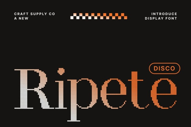 Ripete Disco Font This is a retro inspired serif font that brings classic 70s character into the spotlight with a refreshing modern twist. Its playful curves, expressive serifs, and lively rhythm capture the warmth of vintage typography while staying clean and contemporary. This balance of nostalgia and modern flair gives your designs a joyful, and personality that stands out.