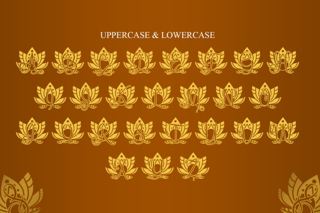 Rise Lotus Mandala Monogram is an ornamental monogram font that blends the delicate beauty of lotus petals with the harmony of mandala symmetry. Designed to symbolize personal growth, awakening, and creative expansion, this font brings an uplifting spirit to any design. Perfect for wellness branding, motivational prints, invitations, journals, or holistic product packaging, it’s both artistic and meaningful.