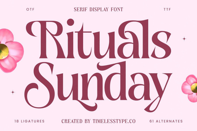 Rituals Sunday Font – Serif Display Font , from Timelesstype.Co , Suitable for any projects such as: logos, branding projects, homeware designs, product packaging, mugs, quotes, posters, shopping bags, t-shirts, book covers, name card, invitation cards, greeting cards, label, photography, watermark, special events, and all your other luxury and beautiful projects that need a Luxury Serif taste.