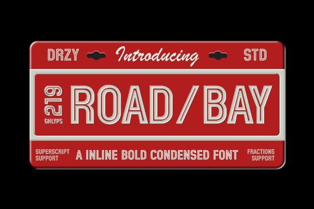 This font is made for personal use. Get the full version of the fonts if you want to use it for commercial purposes by purchasing the licenses here: https://creativemarket.com/faqih.fs/92464562-Roadbay-Inline-Bold-Condensed-Font?u=fontlot123