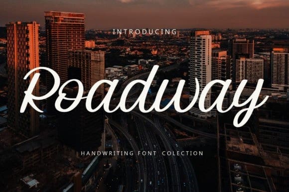 Roadway Script Font is a delicate handwritten font carefully crafted for a cool and unique design. This font can be used to write letters, invitations, food products, titles and more.
