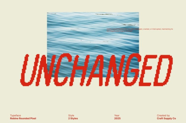 Robine Rounded Pixel Font The brings a unmistakable charm of the 90s digital era into a fresh, modern sans serif form. This font blends pixelated detailing with smooth rounded shapes, creating a distinctive look that evokes classic video games while still feeling clean and contemporary. Its nostalgic aesthetic makes it instantly eye-catching, while the rounded design softens the pixel structure for a more accessible, versatile appearance.