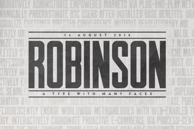 Robinson Font Family is a font inspired by vintage newspaper titles. It’s great for having a bold and attractive title followed by smaller text. It was made specifically with magazines and posters in mind.