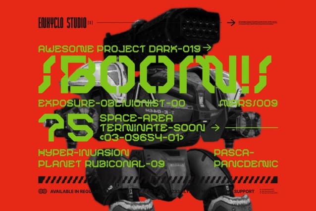 Robmax-36 Font is futuristic mecha cyberpunk typeface. Highly inspired by industrial and mecha-robotic vibes. The design of typeface will make your project more powerful and inspiring. It is perfect for headline, billboard, magazines, website, titles, poster, branding, thumbnail, t-shirt design, street wear design, and creative logos, or any project that needs futuristic and industrial touch. With this beautiful futuristic and industrial typeface, absolutely you can make your project stand out from the rest. See the previews above to get some inspiration on how to use them.