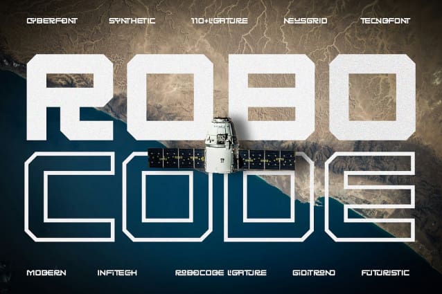 Robocode Futuristic Font by Erifqizefont is a cutting-edge ligature font designed with a bold, symmetrical, and futuristic aesthetic, perfect for projects with a techno vibe. Its sleek, geometric forms give it a modern, innovative look that embodies the essence of technology and the future. With over 110 ligatures, Robocode Futuristic offers a seamless and dynamic reading experience, while its multilingual and Cyrillic support ensures accessibility for a global audience. Ideal for tech-driven branding, UI design, and futuristic projects, Robocode delivers a sharp, modern touch that stands out in any creative application.
