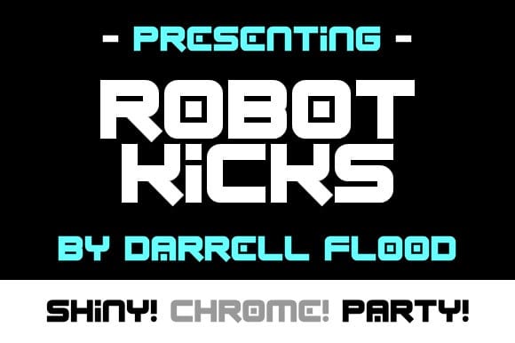Robot Kicks Font is a cool, modern, decorative font in a unique futuristic style. Perfect for sci-fi themes and electronic music!