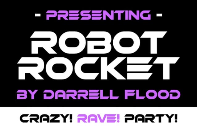 Robot Rocket Font is a retro futuristic typeface in stencil format. The font has a bold and big vibe and mixes sharp and round corners, kind of like the very old sci-fi movie titles. Perfect for space exploration, alien encounters, techno music and high tech themes!