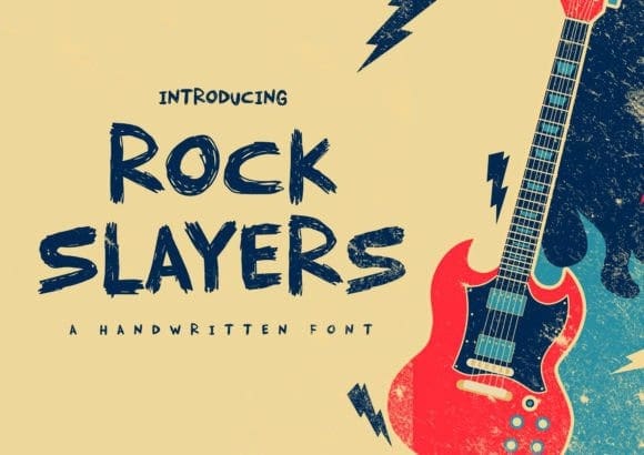 Rock Slayers Font is a whimsical and bold display font. It has a thick-lettered and cool vibe, making it great for crafting, titles, displays, and more. This original look will appeal to a wide range of crafty ideas, from letterheads and titles to stationery.
