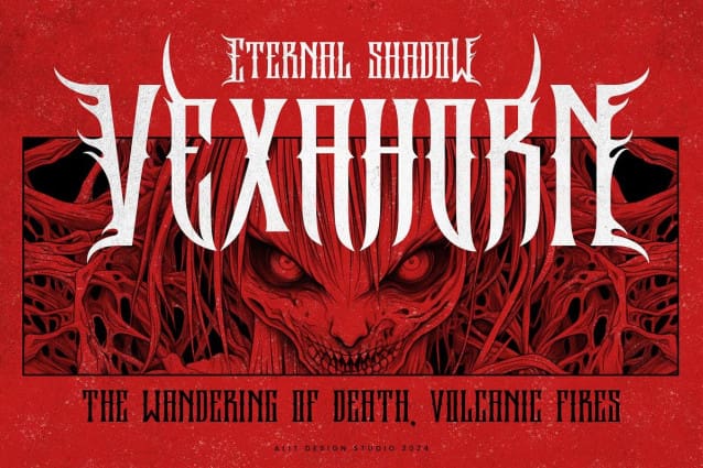 Rockakura Font, a bold and menacing font inspired by the raw intensity of metal culture. Forged with cruel thorns that evoke the hellish depths and courage to stand against the tide, Rockakura is perfect for those who dare to push boundaries in design. Whether you’re creating logos, album covers, posters, or any project that screams rebellion and power, this typeface delivers a visual punch like no other.
