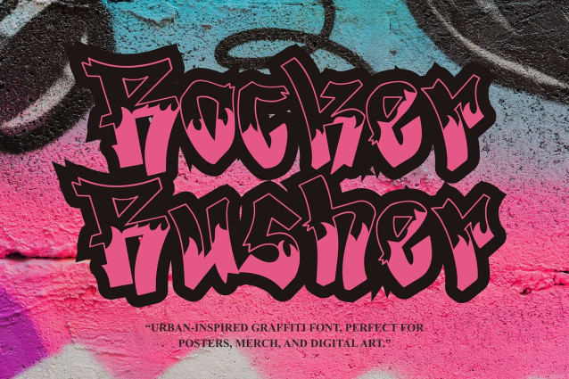 Rocker Rusher Font – a bold graffiti font that exudes a powerful, cutting-edge, urban energy. This font is ideal for livening up posters, accentuating street style, bringing digital art to life, and basically any creative endeavor that requires a contemporary street style. Take your designs from casual to urban with this variable font.