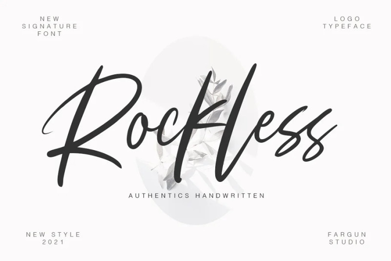 Rockless Script Font is handwritten stylish copperplate calligraphy fonts, combines from copperplate to contemporary typeface with a dancing baseline, classic and elegant touch. Can be used for various purposes. such as headings, signature, logos, wedding invitation, t-shirt, letterhead, signage, lable, news, posters, badges etc.