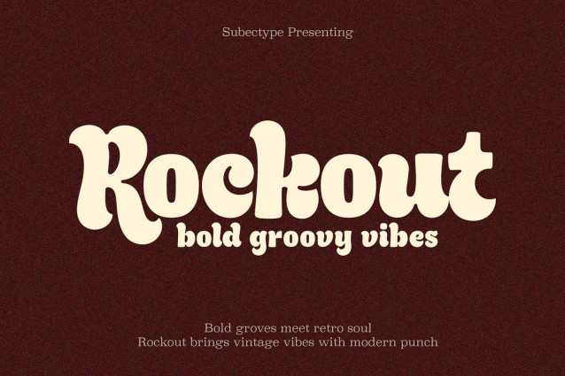 Rockout Display Font is a Modern Retro Groove font. This font combines bold, eye catching strokes with a playful retro vibe, making it perfect for designs that demand attention. Its groovy curves and modern twist bring a sense of nostalgia while keeping your visuals fresh and trendy. Ideal for posters, logos, packaging, and social media, this typeface effortlessly bridges the gap between vintage charm and contemporary style.