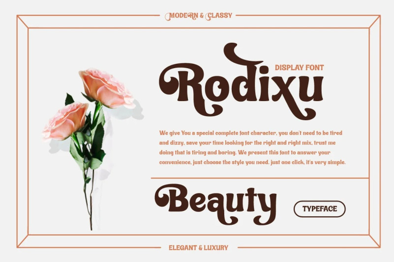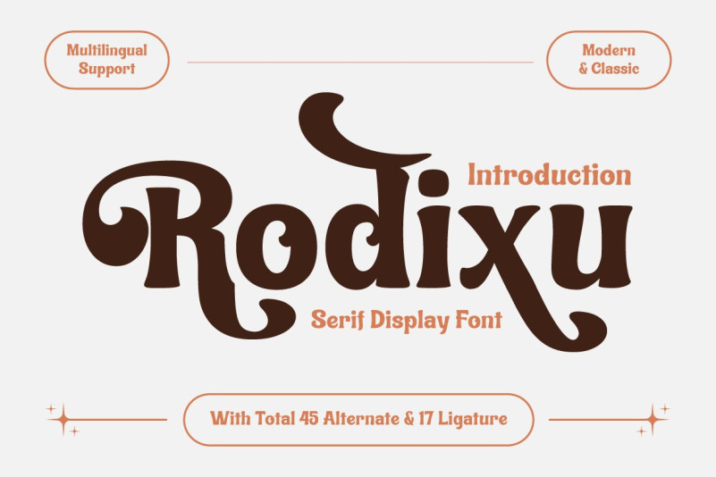 Its timeless appeal makes it suitable for anything from editorial layouts to branding materials. With its stylistic alternates and ligatures, Rodixu offers a range of design possibilities and can elevate any project to the next level. Whether you’re creating a logo, website, or print materials, Rodixu is a font that will help you achieve a polished and professional look.