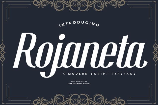 Rojaneta Font is a contemporary script typeface that seamlessly blends elegance with a modern aesthetic. Its graceful, flowing letterforms exude a sense of sophistication, making it an ideal choice for a wide range of design applications. The typeface strikes a balance between traditional calligraphic elements and a sleek, streamlined design, resulting in a versatile and timeless script. Rojaneta’s fluid strokes and well-balanced proportions contribute to its readability, making it suitable for both display and body text. With a dynamic energy and a touch of flair, Rojaneta adds a touch of contemporary charm to any project, making it a standout choice for those seeking a modern script typeface with a classic twist.