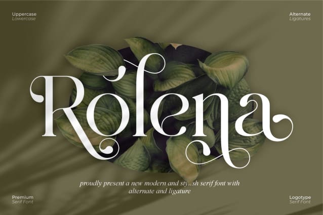 Rolena Serif is a modern and classy font type for all branding and logo designs. This modern and classy Serif font has a beautiful character. This font is suitable for invitation card designs, cool logos, movie titles, movie names, business cards, book titles, brand names, and various other designs. Rolena Serif is a smooth serif font that exudes sophistication and the moment. Its stylish ligatures make this font a perfect partner for any project.