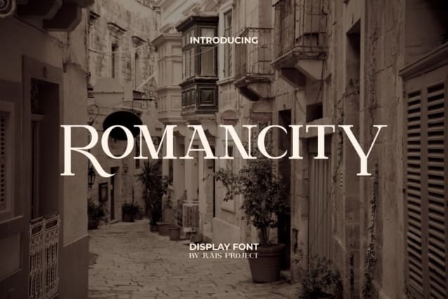Roman City Font is a classic nice serif display font. The lowercase on this font has a smaller size and hangs above than the character of the uppercase. It will be good for any designs, such as brand image, business card, cover, custom design, flyer, invitation, label, marketing material, menu, poster, product packaging, quote, signage, website page, and more!