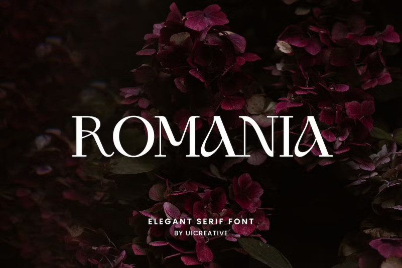 Romania Elegant Serif Font . A modern Serif font that gives an impression of beauty, class, elegance and modernity. This font is perfect for a wide variety of projects, such as signature, stationery, logo, weddings, typographic quotes, magazine or book covers, website headers, apparel, branding, packaging design, etc. Additionally, fashion-related branding or editorial design exhibits both masculine and feminine qualities.