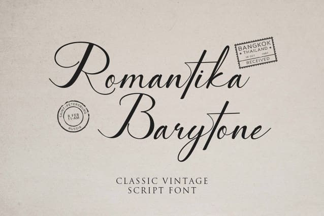Romantika Barytone Font. The modern handwritten font feels beautiful classy, elegant, and stylish. This font is ideally suited for a wide variety of projects, such as signature, stationery, logo, wedding, typography quotes, magazine or book covers, website headers, branding, and more. Also, fashion-related branding or editorial design displays both masculine and feminine qualities.