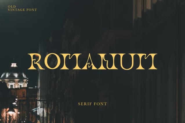 Romanum font serif modern. Its modern design, crafted with classic proportions and quaint serifs, exudes elegance and refinement. Geometric flourishes add a touch of mystery and depth. Perfect for logos, invitations, book covers, spiritual quotes, posters, and anything that needs to convey a sense of intrigue, intellect, and style.