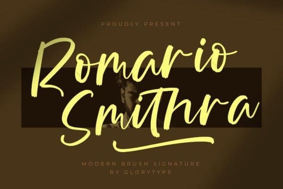Romario Smithra Font – Modern Brush Signature font suitable for any projects such as logos, branding projects, homeware designs, product packaging, mugs, quotes, posters, shopping bags, t-shirts, book covers, name cards, invitation cards, greeting cards, labels, photography, watermark, special events, and all your other lovely projects that need a beautiful script taste.