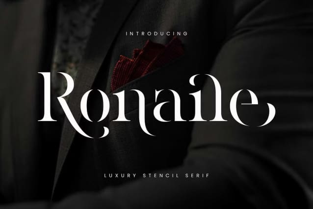 Ronaile Font is an elegant and modern serif font with a distinctive stencil design that brings a high-end aesthetic to any project. Featuring bold contrasts and sleek, sharp edges, this typeface captures attention while maintaining perfect readability. The disappearing thin lines create a unique look that makes Ronaile stand out as a stunning display font.