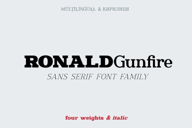 Ronald Gunfire Font Family, is classic and modern serif Font Family carefully designed and well looking in lowercase and uppercase letters both. It has Four Weights with theirs Italic Versions.