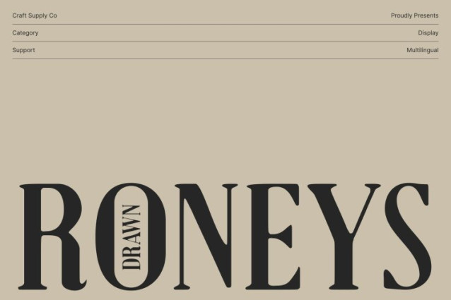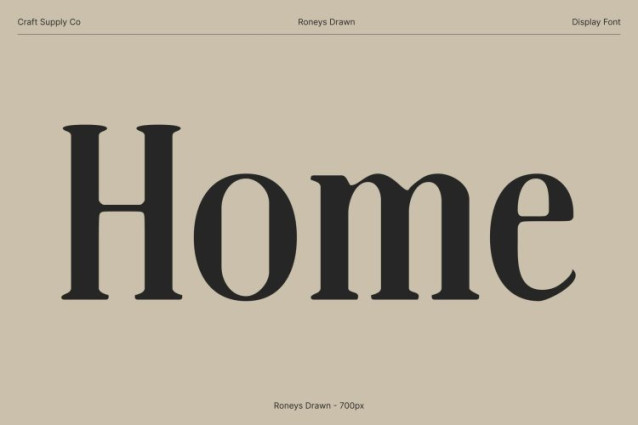 Roneys Drawn Font This font brings together the sophistication of classic serif typography and the clarity of modern design, creating a balanced and versatile display font. Its refined serif structure adds a sense of tradition and elegance, while the clean, updated shapes give it a fresh and contemporary appeal.